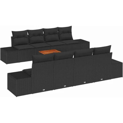 vidaXL Garden Sofa Set with Cushion 9 pcs Black Poly rattan