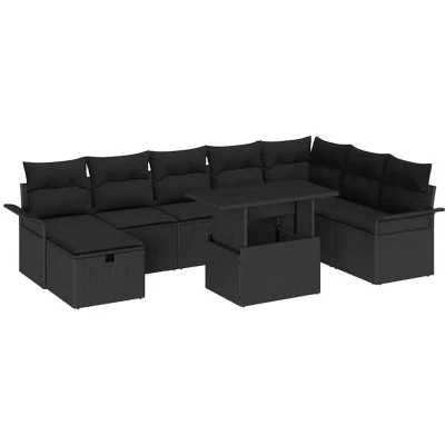 vidaXL Garden Sofa Set with Cushion 9 pcs Black Poly rattan