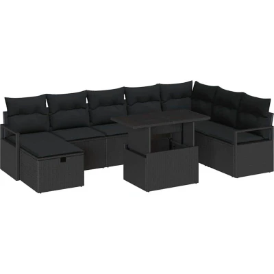 vidaXL Garden Sofa Set with Cushion 9 pcs Black Poly rattan