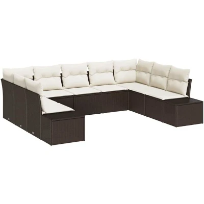 vidaXL Garden Sofa Set with Cushion 9 pcs Brown and cream Poly Rattan