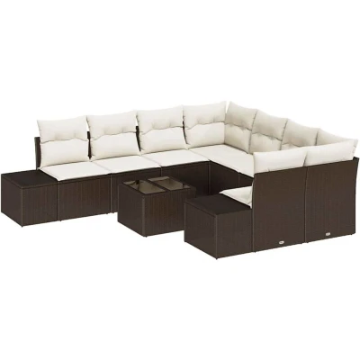 vidaXL Garden Sofa Set with Cushion 9 pcs Brown Poly Rattan