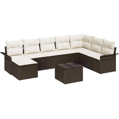 vidaXL Garden Sofa Set with Cushion 9 pcs Brown Poly rattan