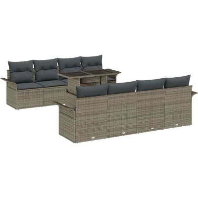 vidaXL Garden Sofa Set with Cushion 9 pcs Grey Poly Rattan
