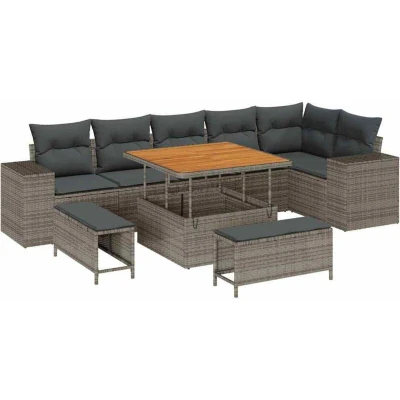 vidaXL Garden Sofa Set with Cushion 9 pcs Grey Poly Rattan