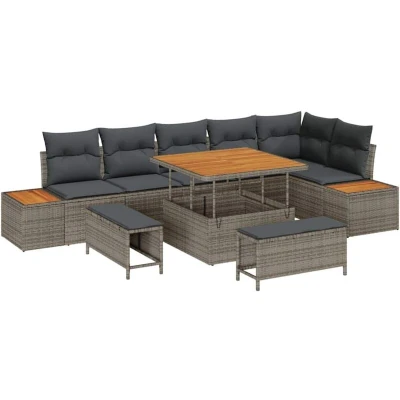 vidaXL Garden Sofa Set with Cushion 9 pcs Grey Poly rattan