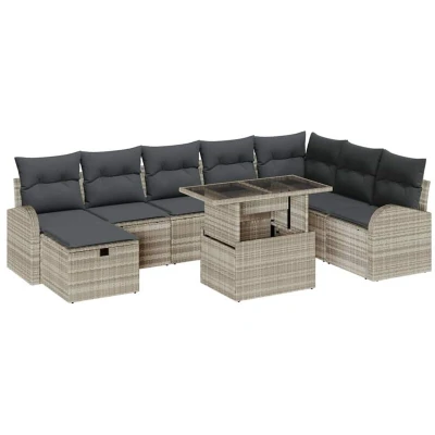 Vidaxl Garden Sofa Set with Cushion 9 pcs Light grey Poly rattan