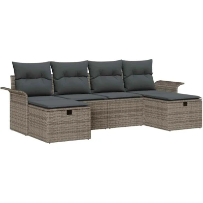 vidaXL Garden Sofa Set with Cushion Manual 6 pcs Grey Poly Rattan