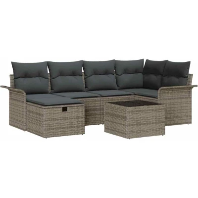 vidaXL Garden Sofa Set with Cushion Manual 7 pcs Grey Poly Rattan