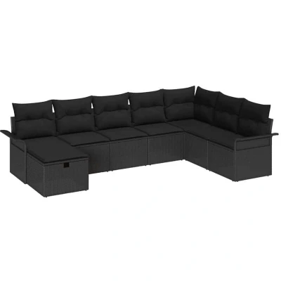 vidaXL Garden Sofa Set with Cushion Manual 8 pcs Black Poly Rattan
