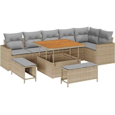 vidaXL Garden Sofa Set with Cushion Manual 9 pcs Beige and light grey