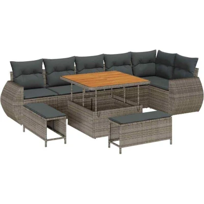 vidaXL Garden Sofa Set with Cushion Pillow 9 pcs Grey Poly Rattan