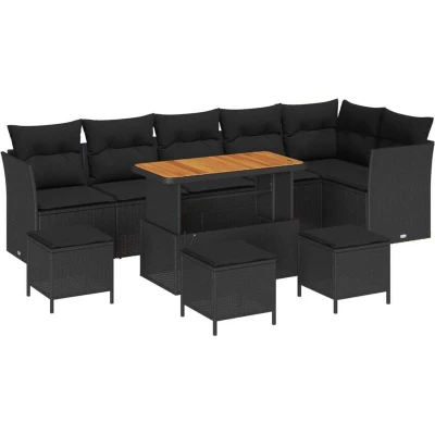 vidaXL Garden Sofa Set with Cushion Storage 10 pcs Black