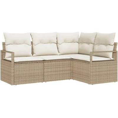 ManoManoGeneral description This Outdoor Modular Sofa Set with Cushions combines style and functionality, allowing you to customize your seating arrangements for your garden or terrace. With a modern and sleek design, it enhances the look of any outdoor space, making it perfect for summer hangouts or simply relaxing outside. Technical specifications Colour: Beige and cream Material: Poly rattan and powder-coated steel Seat width: 55 cm Seat depth: 55 cm Max weight: 110 kg Assembly required: Yes Delivery contains: 1 x Corner seat 1 x Centre seat 2 x Arm sofa EAN: 8721288353016 SKU: 3355030 Brand: vidaXL Compatibility and accessories Modular design for customizable arrangements Storage compartments for outdoor essentials Installation Assembly required for setup Usage Ideal for patios, terraces, and decks Low maintenance; cover when not in use Other information