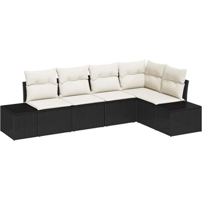 vidaXL Garden Sofa Set with Cushion Storage 5 pcs Black and Cream