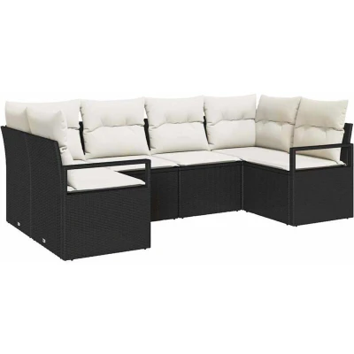 ManoManoGeneral description This Modular Outdoor Sectional Sofa for Six features a modern and stylish design, making it an excellent choice for transforming any garden or terrace into a cozy retreat. With ample seating for six, it serves as the perfect spot for entertaining guests or enjoying a peaceful afternoon in the sun. The sectional seamlessly integrates with various outdoor styles, encouraging relaxation while complementing contemporary settings. Technical specifications Materials: Poly rattan and powder-coated steel Colour: Black and cream Seat width: 55 cm Seat depth: 55 cm Max weight capacity: 110 kg Assembly required: Yes Included components: 2 x Corner seat, 2 x Centre seat, 2 x Arm sofa EAN: 8721288354570 SKU: 3355186 Care & Maintenance Use a cover during rain to maintain appearance. Clean with a damp cloth for easy maintenance. Assembly requires two people and a screwdriver, making it a fun DIY project. Other information