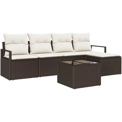 vidaXL Garden Sofa Set with Cushion Storage 6 pcs Brown and Cream