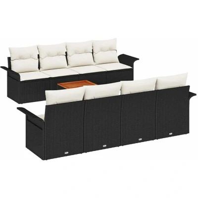ManoManoGeneral description This Garden Sofa Set combines modern style with practical use, making it an excellent addition to any outdoor area. With its sleek design and smart storage options, it serves as a versatile spot for relaxation and entertaining. Crafted from UV-resistant poly rattan, powder-coated steel, and solid acacia wood, the soft cushions create a welcoming atmosphere for gatherings or quiet moments. Technical specifications Colour: Black and cream Material: Poly rattan, powder-coated steel, and solid acacia wood Overall dimensions: 55 x 55 x 37 cm (L x W x H) Weight: 49.18 kg Seating area: 165 x 55 cm (W x D) Filling material: Foam Indoor / outdoor: Outdoor only Number of items: 7 Assembly required: Yes EAN: 8721288362391 SKU: 3355968 Brand: vidaXL Included Components 4 x Centre seats with storage function and water-resistant bags 2 x Arm sofas with storage function and water-resistant bags 1 x Garden table Modular Design This sofa set features a modular design that offers