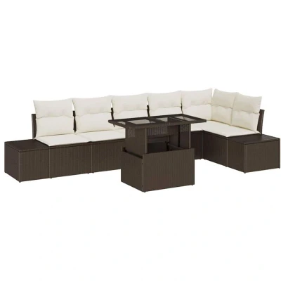 vidaXL Garden Sofa Set with Cushion Storage 7 pcs Brown and cream