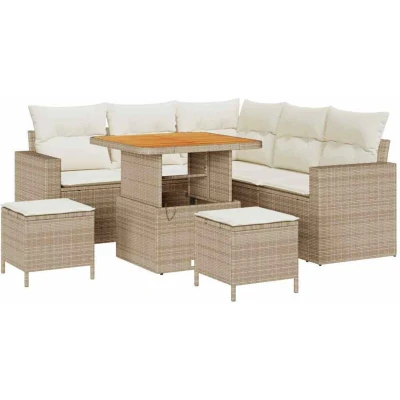This Garden Sofa Set offers a modern and versatile solution for outdoor relaxation. Crafted for garden or terrace spaces, it combines simplicity with functionality, enhancing any decor with clean lines and minimal ornamentation. Its modular nature allows users to configure it according to preference, creating personalized seating arrangements, whether for hosting friends or quiet reflection. Premium Materials: This set is made with Poly Rattan and Solid Acacia wood. The elegant appearance combines both contemporary style and durability. Poly Rattan provides exceptional weather resistance, while Solid Acacia wood offers natural beauty and strength, ensuring long-lasting performance. Comprehensive Components: Equipped with a finished and presentable back, the sofa incorporates a powder-coated steel frame that ensures structural integrity. An outdoor seat cushion is included, specifically designed with weather-resistant fabric for enduring outdoor conditions, further enhancing the set's comfort. Distinctive Features: The modular design stands out as it allows the reconfiguration of various modules, adapting to any desired setting. Removable/replaceable cushions support easy cleaning, while being lightweight makes each module easy to move, adjusting effortlessly to changing occasions or preferences. Optimal Uses: Perfect for spring and summer gatherings, this sofa set is designed for gardens and terraces. The versatility and adaptability of this set make it ideal for various settings, from casual family get-togethers to formal outdoor events, providing both a welcoming and sophisticated atmosphere. Care Guidelines: For continued elegance and functionality, cover the furniture when not in use. Regularly clean the cushions with a dry cloth, and avoid harsh chemicals for maintenance. Following these simple care instructions ensures prolonged usability and aesthetic appeal.