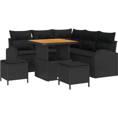 vidaXL Garden Sofa Set with Cushion Storage 8 pcs Black