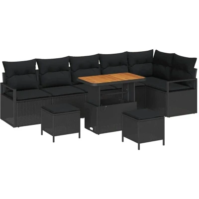 vidaXL Garden Sofa Set with Cushion Storage 9 pcs Black