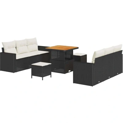 vidaXL Garden Sofa Set with Cushion Storage 9 pcs Black and cream