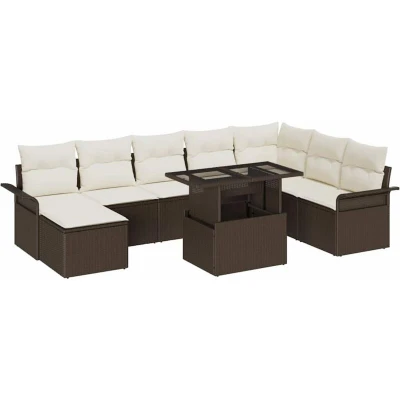 vidaXL Garden Sofa Set with Cushion Storage 9 pcs Brown and Cream
