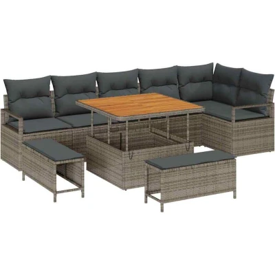 vidaXL Garden Sofa Set with Cushion Storage 9 pcs Grey