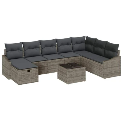 vidaXL Garden Sofa Set with Cushion Storage 9 pcs Poly Rattan