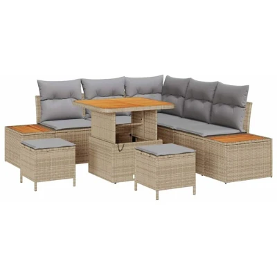 vidaXL Garden Sofa Set with Cushion Storage Beige Poly rattan
