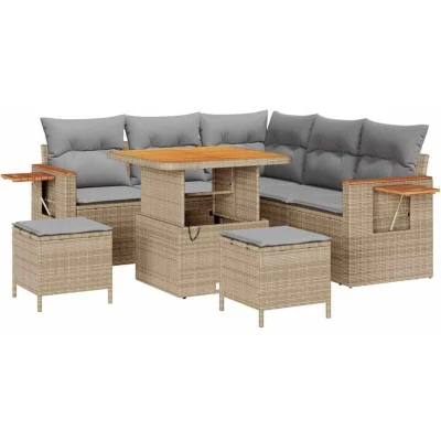 vidaXL Garden Sofa Set with Cushion Storage Beige Poly rattan