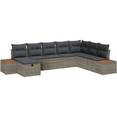 vidaXL Garden Sofa Set with Cushion Storage Grey Poly Rattan