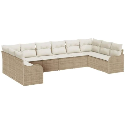 vidaXL Garden Sofa Set with Storage 10 pcs Beige and white Poly Rattan