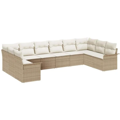 vidaXL Garden Sofa Set with Storage 10 pcs Beige Poly Rattan