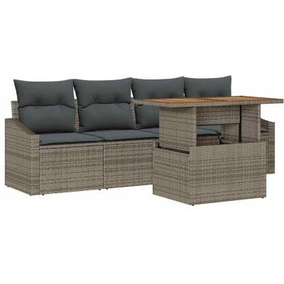 vidaXL Garden Sofa Set with Storage 5 pcs Grey Poly rattan