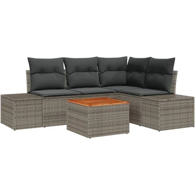 vidaXL Garden Sofa Set with Storage 5 pcs Grey Poly Rattan