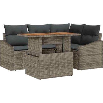 vidaXL Garden Sofa Set with Storage 5 pcs Grey Poly rattan