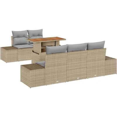 vidaXL Garden Sofa Set with Storage 6 pcs Beige Poly rattan