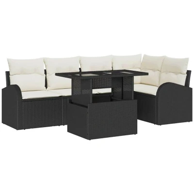 vidaXL Garden Sofa Set with Storage 6 pcs Black and Cream Poly Rattan