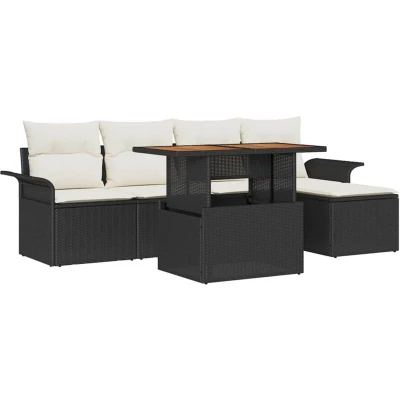Vidaxl Garden Sofa Set with Storage 6 pcs Black Poly rattan