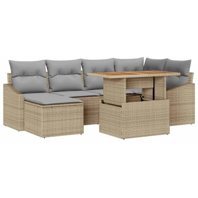 vidaXL Garden Sofa Set with Storage 7 pcs Beige Poly rattan