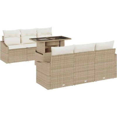 vidaXL Garden Sofa Set with Storage 7 pcs Beige Poly rattan