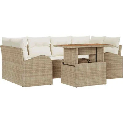 vidaXL Garden Sofa Set with Storage 7 pcs Beige Poly rattan