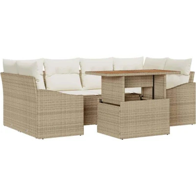 vidaXL Garden Sofa Set with Storage 7 pcs Beige Poly rattan