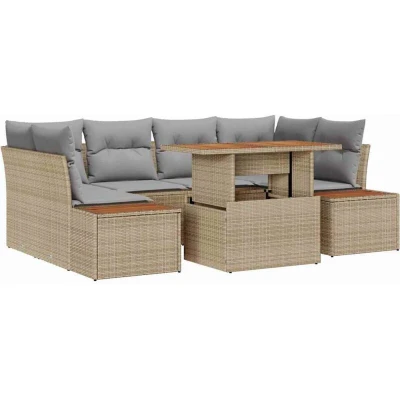 vidaXL Garden Sofa Set with Storage 7 pcs Beige Poly rattan