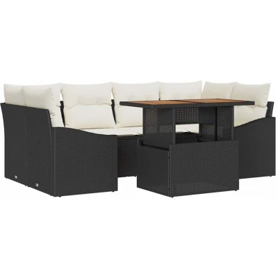 vidaXL Garden Sofa Set with Storage 7 pcs Black Poly rattan