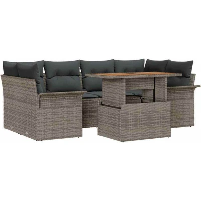 vidaXL Garden Sofa Set with Storage 7 pcs Grey Poly rattan