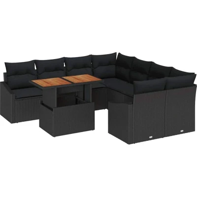 vidaXL Garden Sofa Set with Storage 9 pcs Black Poly rattan