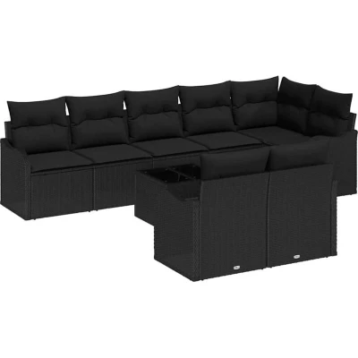 vidaXL Garden Sofa Set with Storage 9 pcs Black Poly Rattan