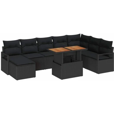 vidaXL Garden Sofa Set with Storage 9 pcs Black Poly rattan